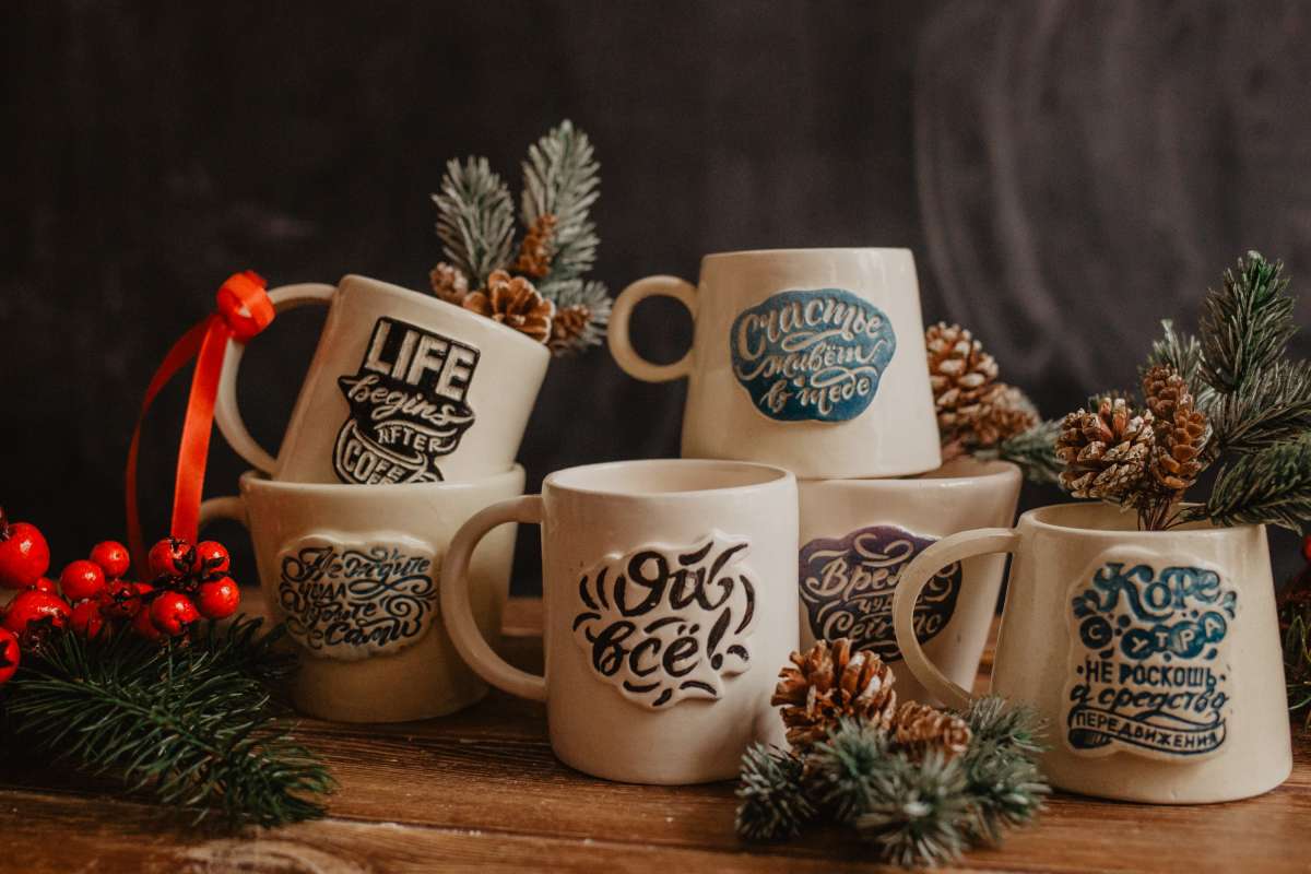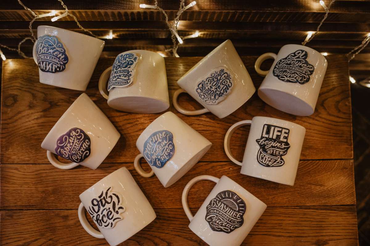 Красивая авторская каллиграфия и белоснежная глина - то, что надо для размышлений под запах свежего кофе или аромат горячего чая. Вариантов надписей очень много: юмор, мотивация, цитаты из фильмов, крылатые фразы. Здесь каждый выберет себе именно тот вариант, который ему придётся по душе.