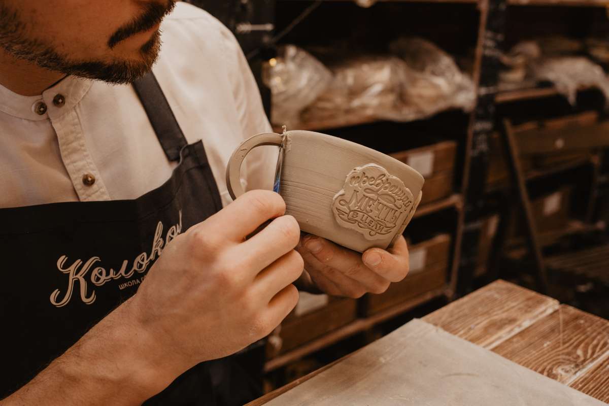 Как проходит мастер-класс? За гончарным кругом под руководством мастера вы сделаете желаемую форму кружки - прямую, с раскрытым верхом, округлую и т.д, за столом сделаете ручку, и надпись. Все соедините и, по желанию, сможете раскрасить надпись.